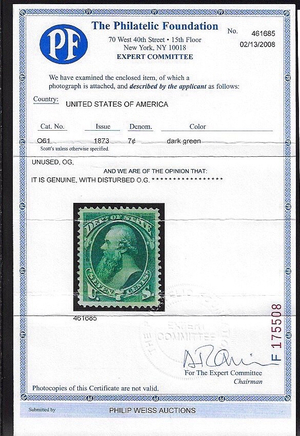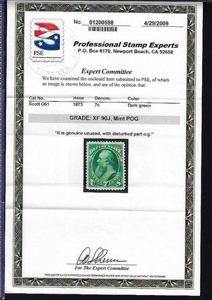 WCstamps: U.S. Scott #O61 7c State Officials XF Mint OGph 2009 PSE Cert SMQ $675