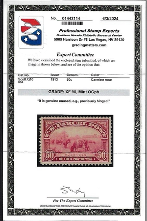 WCstamps: U.S. Scott #Q10 / 50c Parcel Post XF Mint OGph 2024 PSE Cert SMQ $365