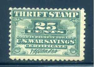 WS1, 25¢ War Savings Stamp, Mint NH, light gum bend, Scott $30