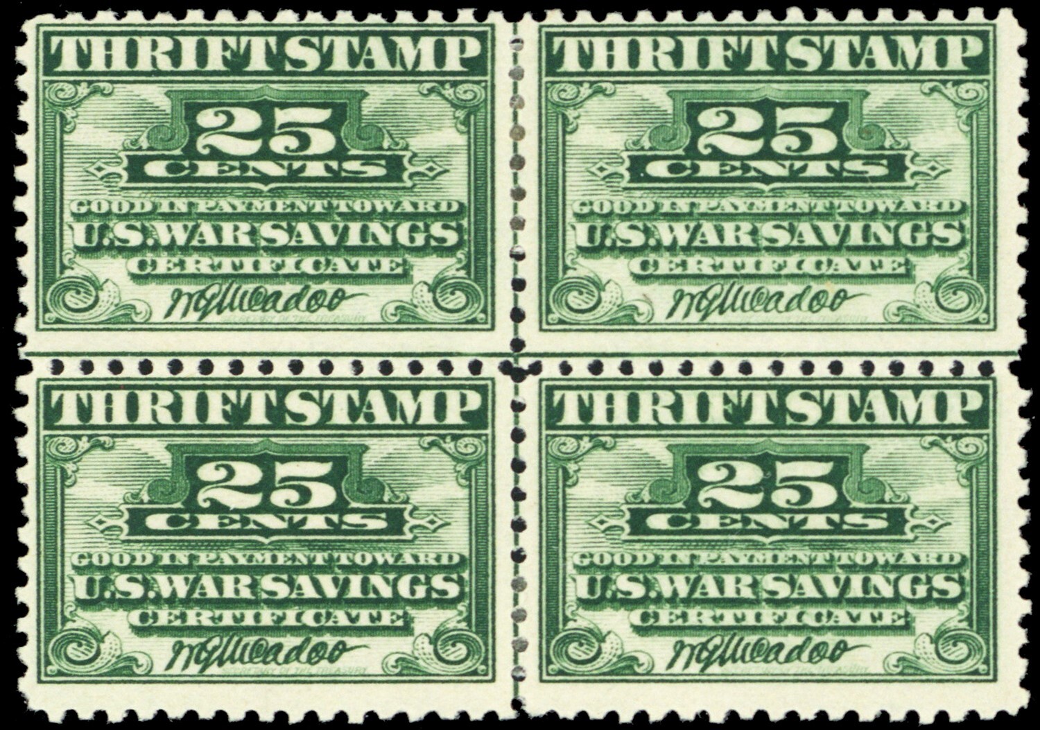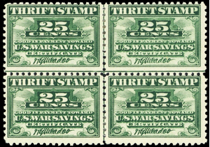 WS1, Mint HR 25¢ VERY RARE Center Line Block * Stuart Katz