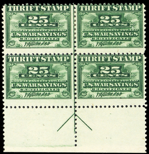 WS1, Mint NH/HR 25¢ VERY RARE Arrow Block * Stuart Katz