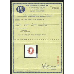 U.S. #RO39d SCARCE Unused - 1c Bowers & Dunham, Wmkd