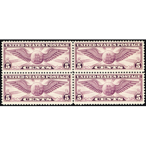 C12, MNH 5¢ VF Block of Four Stamps CV $70 - Stuart Katz