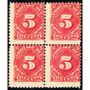 J64, Mint NH 5¢ Block of Four Postage Due Stamps SCV $130.00 * Stuart Katz
