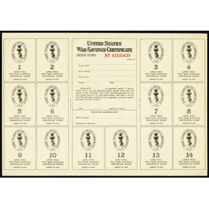 1918 Unused War Savings Certificate For WS2-3 Stamps * RARE! * Stuart Katz