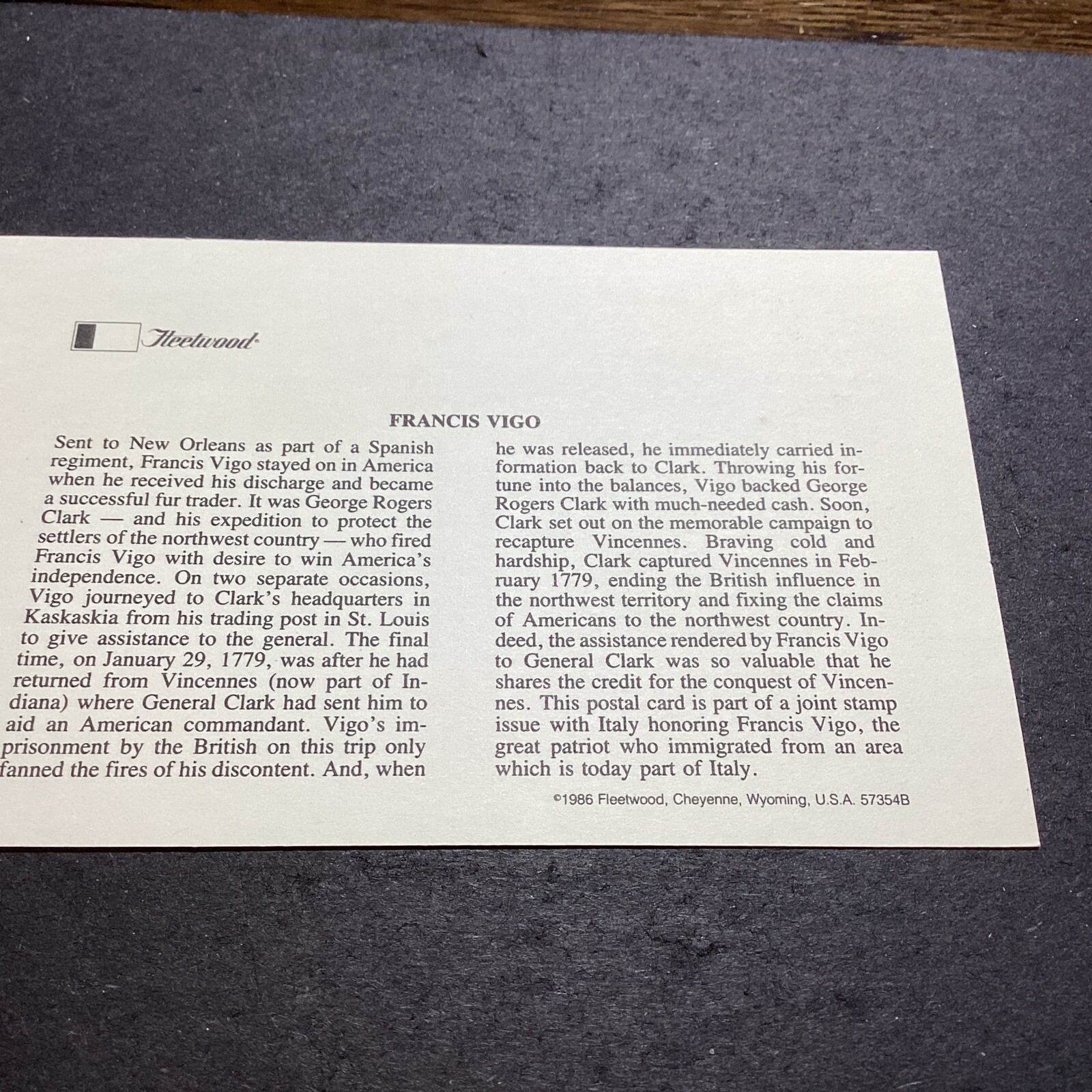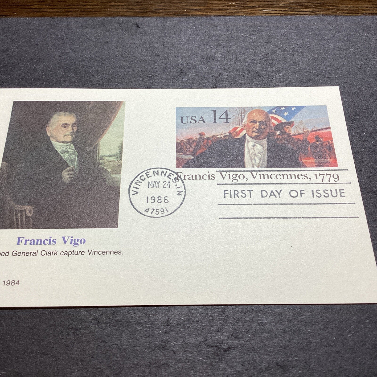 Fleetwood—1986-First day of issue $.14 Francis Vigo postal card-US. Shipped with USPS Ground Advantage.