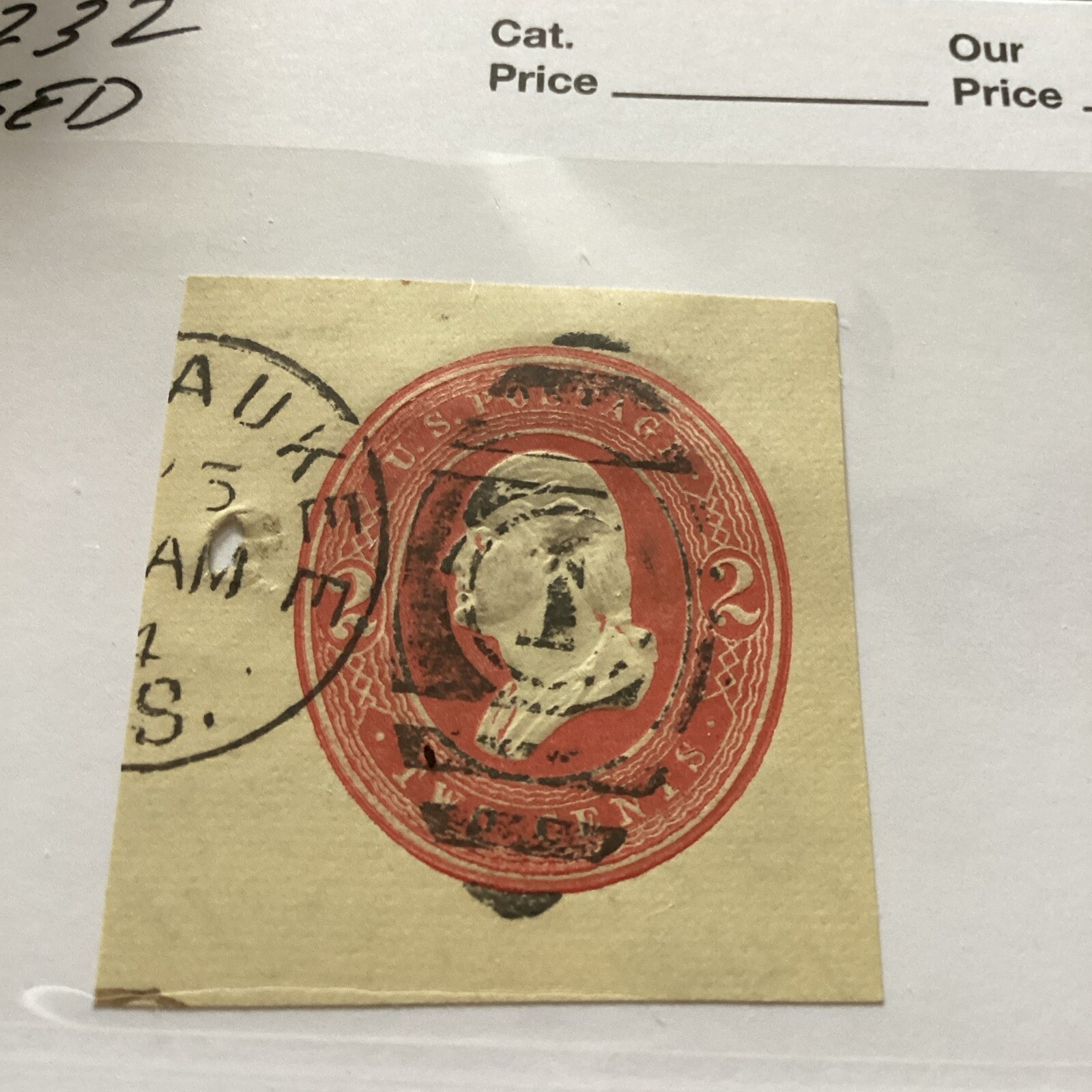 Scott#U232 Washington Cut Square-Used-US. Shipped with USPS Ground Advantage.
