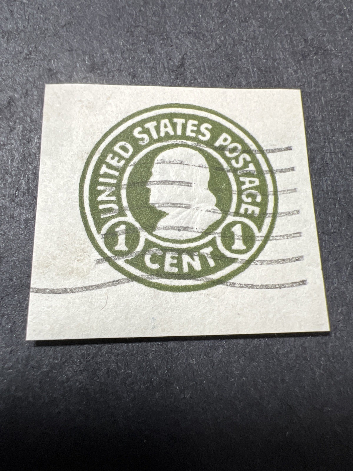 Scott#U420 Franklin US Cut Square 1c green on white, die 2, Used. Shipped with USPS Ground Advantage.