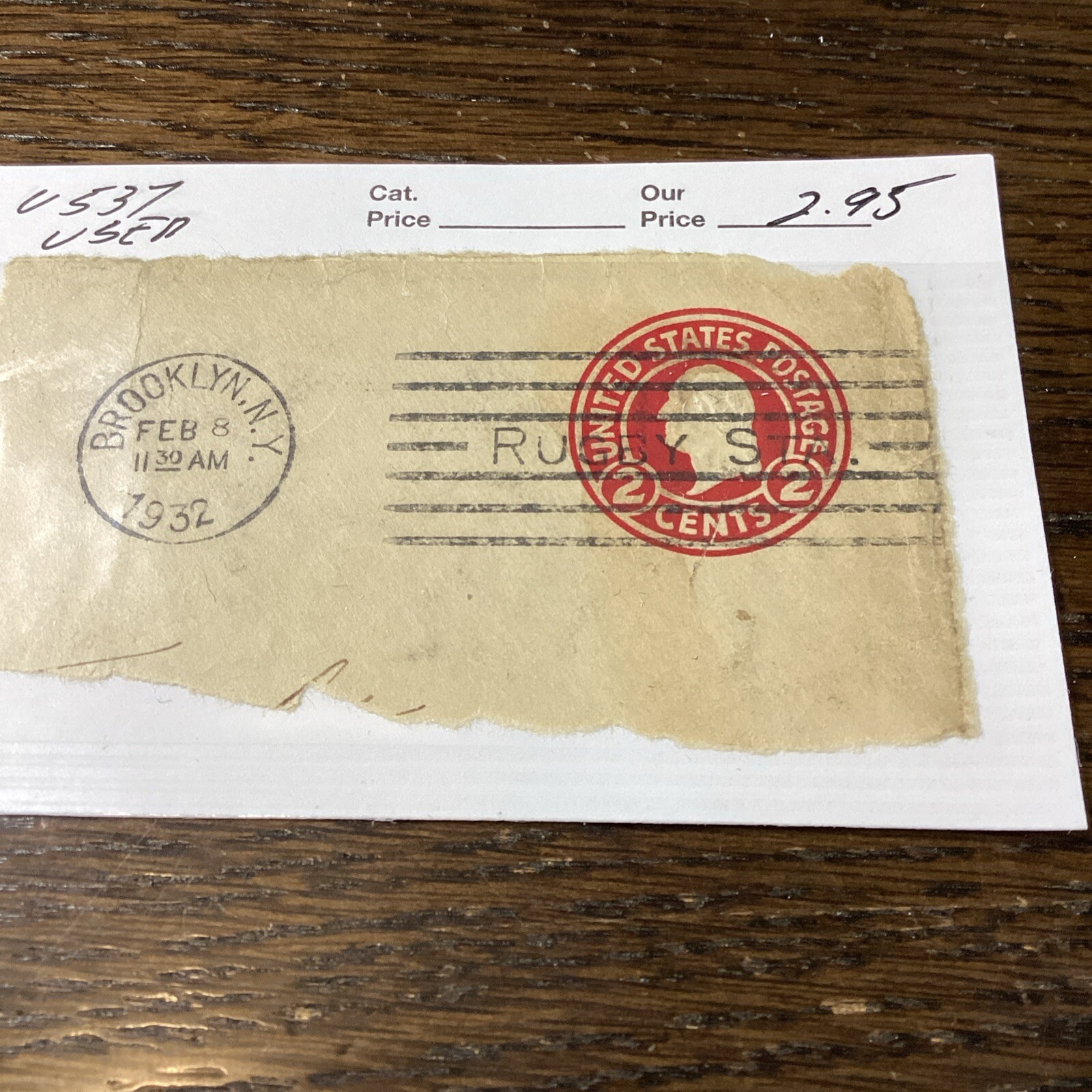 SCOTT #U537 Top Envelope Corner-Used-1932-US. Shipped with USPS Ground Advantage.