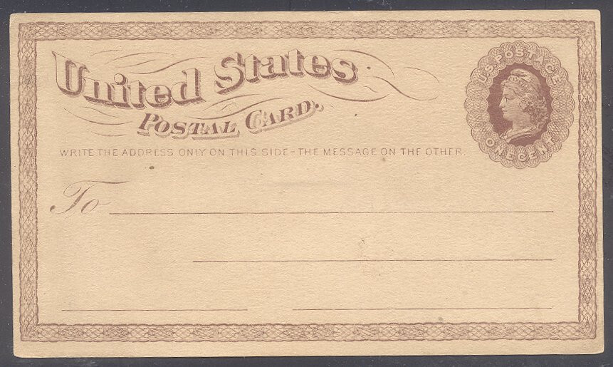UPSS #S1E-Z: 1c Brown on Buff Centering & Condition: Very Fine and SCARCE Essay Postal Card. Reverse (Gum Side): N/A Faults / Imperfections: None The item pictured is the actual item you are purchasing, unless otherwise noted. I also offer an interest-free layaway plan. Ask me about it!" All items will be mailed a day or two after payment is received. --------------------------------------------------------------------------------