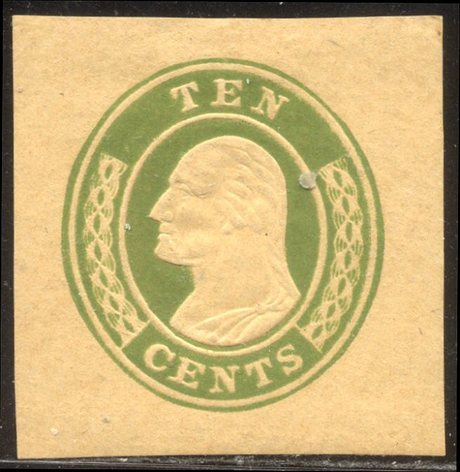 Scott #U16: 10c Green on Buff Centering & Condition: Unused. Very Fine cut square. Reverse (Gum Side): N/A Faults / Imperfections: None The item pictured is the actual item you are purchasing, unless otherwise noted. I also offer an interest-free layaway plan. Ask me about it!" All items purchased will be mailed a day or two after payment is received. --------------------------------------------------------------------------------