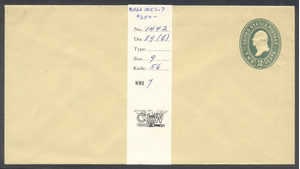 Scott #U323: 2c Green, on Amber Man, Die 3 Centering & Condition: Mint. Very Fine entire. Reverse (Gum Side): N/A Faults / Imperfections: None The item pictured is the actual item you are purchasing, unless otherwise noted. I also offer an interest-free layaway plan. Ask me about it!" All items will be mailed a day or two after payment is received. --------------------------------------------------------------------------------