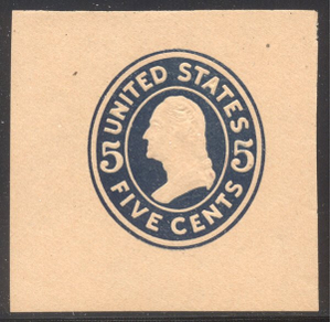 Scott #U418b: 5c Blue on Or Buff Centering & Condition: Unused. Very Fine and RARE cut square. Signed by Champagne. Reverse (Gum Side): N/A Faults / Imperfections: Couple pinpoint inclusion specks The item pictured is the actual item you are purchasing, unless otherwise noted. I also offer an interest-free layaway plan. Ask me about it!" All items purchased will be mailed a day or two after payment is received. --------------------------------------------------------------------------------