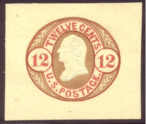 Scott #U42: 12c Brown & Red Centering & Condition: Unused. Very Fine cut square. Reverse (Gum Side): N/A Faults / Imperfections: Pinpoint paper speck The item pictured is the actual item you are purchasing, unless otherwise noted. I also offer an interest-free layaway plan. Ask me about it!" All items purchased will be mailed a day or two after payment is received. --------------------------------------------------------------------------------