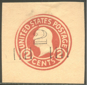 Scott #U456: 2c on 2c Carmine on Or Buff Centering & Condition: Unused. Very Fine and SCARCE cut square. Reverse (Gum Side): N/A Faults / Imperfections: None The item pictured is the actual item you are purchasing, unless otherwise noted. I also offer an interest-free layaway plan. Ask me about it!" All items purchased will be mailed a day or two after payment is received. --------------------------------------------------------------------------------