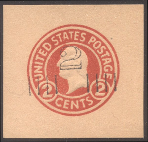 Scott #U456a: 2c on 2c Carmine on Oriental Buff, Die 5 Centering & Condition: Unused. Very Fine cut square. Reverse (Gum Side): None Faults / Imperfections: None The item pictured is the actual item you are purchasing, unless otherwise noted. I also offer an interest-free layaway plan. Ask me about it!" All items purchased will be mailed a day or two after payment is received. --------------------------------------------------------------------------------