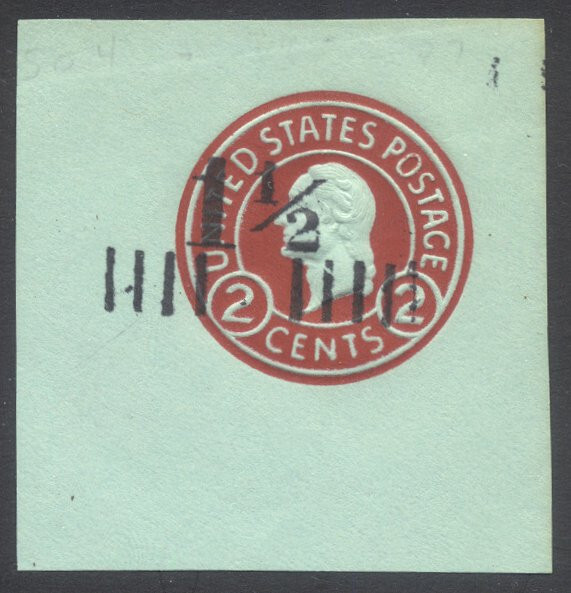Scott #U504a: 1 1/2c on 2c Carmine on Blue Centering & Condition: Unused. SUPERB cut square. Reverse (Gum Side): N/A Faults / Imperfections: None The item pictured is the actual item you are purchasing, unless otherwise noted. I also offer an interest-free layaway plan. Ask me about it!" All items purchased will be mailed a day or two after payment is received. --------------------------------------------------------------------------------