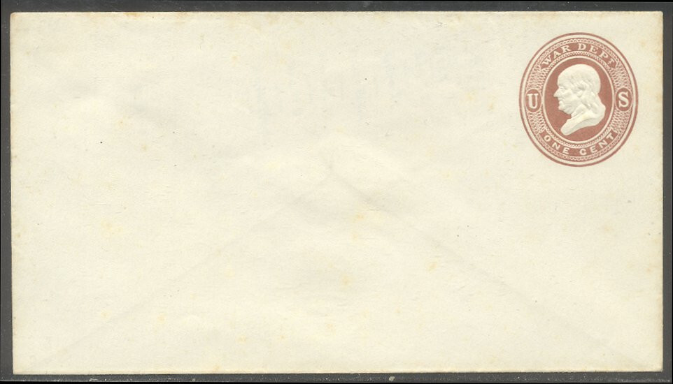 Scott #UO18 (UPSS #WD1): 1c Dark Red, War Dept Centering & Condition: Mint. Fresh. Very Fine and SCARCE Entire. Reverse (Gum Side): N/A Faults / Imperfections: None The item pictured is the actual item you are purchasing, unless otherwise noted. I also offer an interest-free layaway plan. Ask me about it!" All items will be mailed a day or two after payment is received. --------------------------------------------------------------------------------