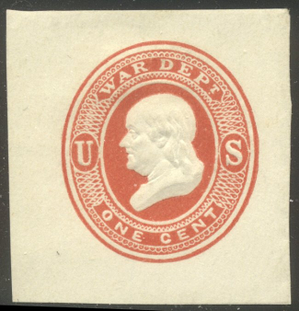 Scott #UO30: 1c Vermilion, War Dept Centering & Condition: Unused. Very Fine cut square. Reverse (Gum Side): N/A Faults / Imperfections: None The item pictured is the actual item you are purchasing, unless otherwise noted. I also offer an interest-free layaway plan. Ask me about it!" All items purchased will be mailed a day or two after payment is received. --------------------------------------------------------------------------------