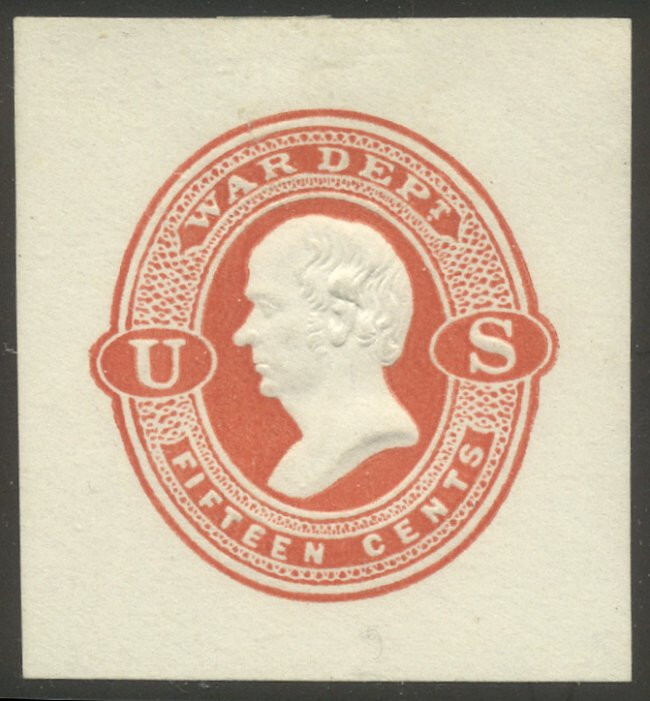 Scott #UO41: 15c Vermilion, War Dept Centering & Condition: Unused. Very Fine cut square. Reverse (Gum Side): N/A Faults / Imperfections: None The item pictured is the actual item you are purchasing, unless otherwise noted. I also offer an interest-free layaway plan. Ask me about it!" All items purchased will be mailed a day or two after payment is received. --------------------------------------------------------------------------------