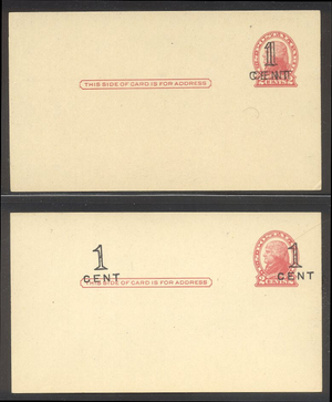 Scott #UX33b: 1c on 2c Red Surcharge Centering & Condition: Mint. Fresh. (2) Very Fine postal cards. Reverse (Gum Side): N/A Faults / Imperfections: None The item pictured is the actual item you are purchasing, unless otherwise noted. I also offer an interest-free layaway plan. Ask me about it!" All items will be mailed a day or two after payment is received. ![]() ![]() ![]() --------------------------------------------------------------------------------