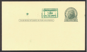 Scott #UX39 var: 1952 2c on 1c Green Centering & Condition: Mint. Fresh. Very Fine and RARE Postal Card showing a Reverse (Gum Side): N/A Faults / Imperfections: None The item pictured is the actual item you are purchasing, unless otherwise noted. I also offer an interest-free layaway plan. Ask me about it!" All items will be mailed a day or two after payment is received. -------------------------------------------------------------------------------- Please click any of the following to read: |