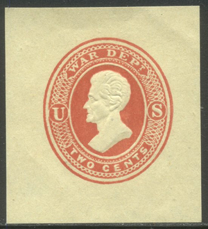 Scott #WO77: 2c Vermilion on Manila Centering & Condition: Unused. Extremely Fine cut square. Reverse (Gum Side): N/A Faults / Imperfections: None The item pictured is the actual item you are purchasing, unless otherwise noted. I also offer an interest-free layaway plan. Ask me about it!" All items purchased will be mailed a day or two after payment is received. --------------------------------------------------------------------------------