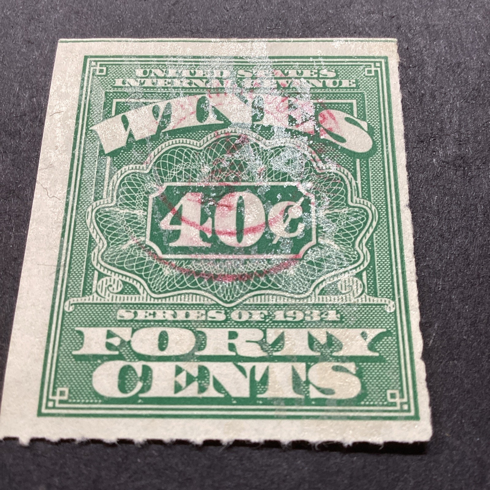 1934 Internal Revenue 40 cent Wine Revenue Stamp. Shipped with USPS Ground Advantage.