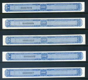 Blue Wmk Collection of 5, Alcohol Internal Revenue, Bottled in Bond for Export