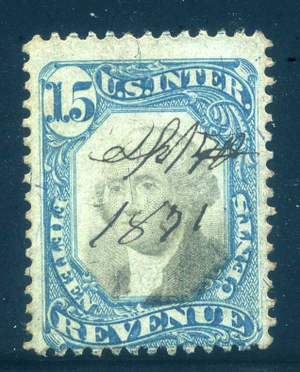 R110, 15¢ Second Issue, Used, tiny corner crease, Scott $100