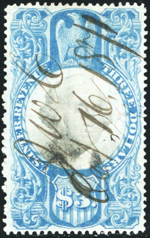 R125, Used VF $3 Revenue Stamp SCV $75 - Stuart Katz