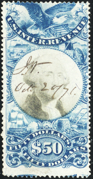 R131, Used Fine $50 Sound RARE Revenue Stamp SCV $850 - Stuart Katz
