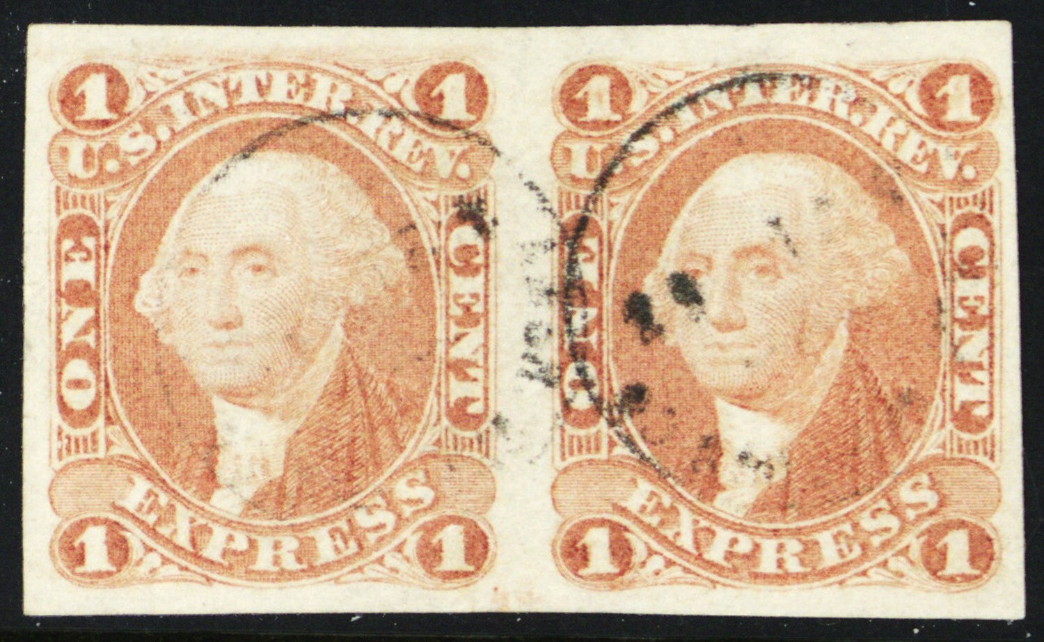 R1a, Used 1¢ XF Pair - Express Revenue Stamps - Stuart Katz