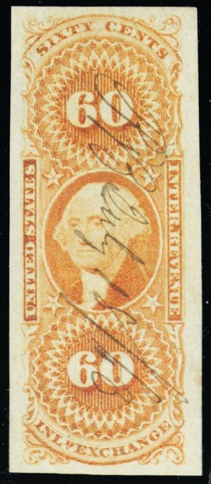 R64a, Used Superb 60¢ Revenue Imperforate Stamp A GEM - Stuart Katz