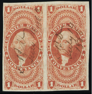 R66a, Used $1 VF Imperforate Revenue Pair * Stuart Katz