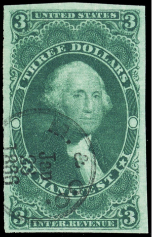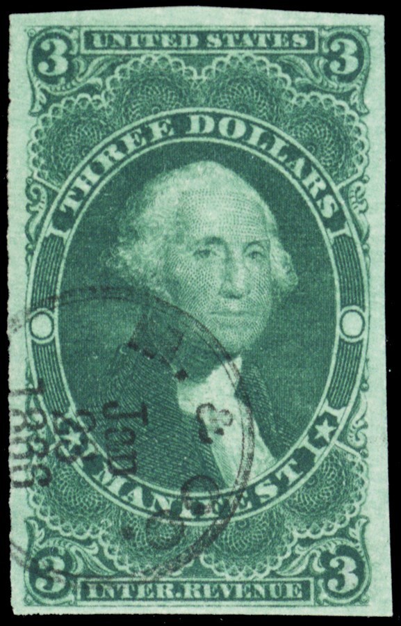 R86a, Used XF $3 Manifest Revenue Stamp Cat $200.00+ - Stuart Katz