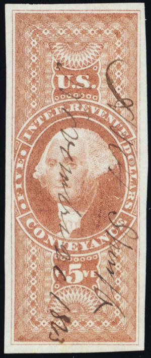 R89a, Used $5 Superb GEM Imperforate Conveyance - Stuart Katz