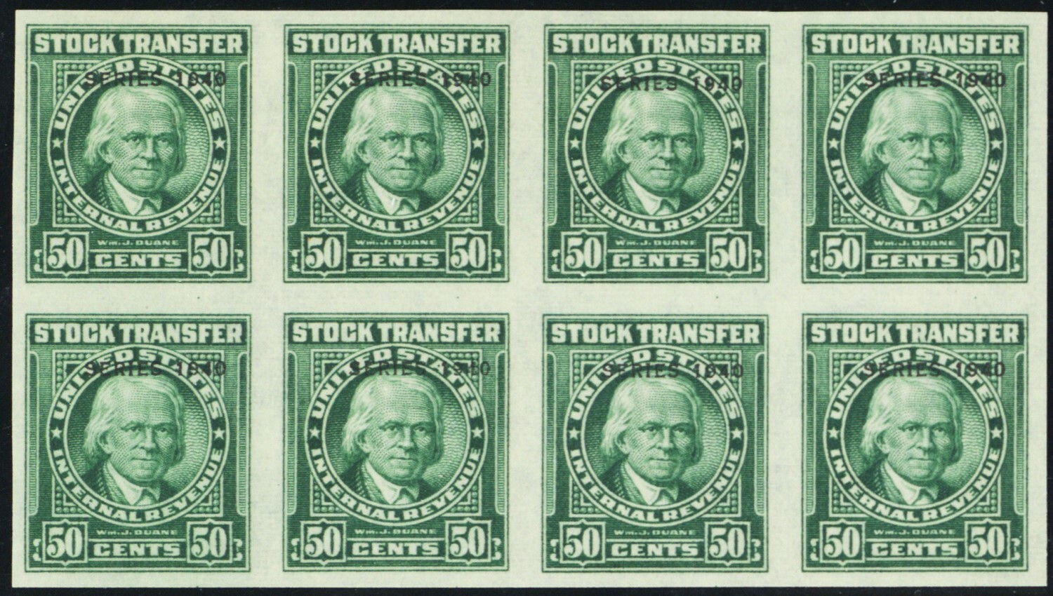 RD77a, Unused (NGAI) 50¢ Imperforate Block of 8 - PSE Cert CV $800 - Stuart Katz