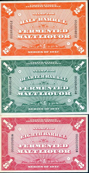 REA190-92, 1/8-1/2 Barrel, Fermented Malt Liquor, No gum as issued, Scott $255