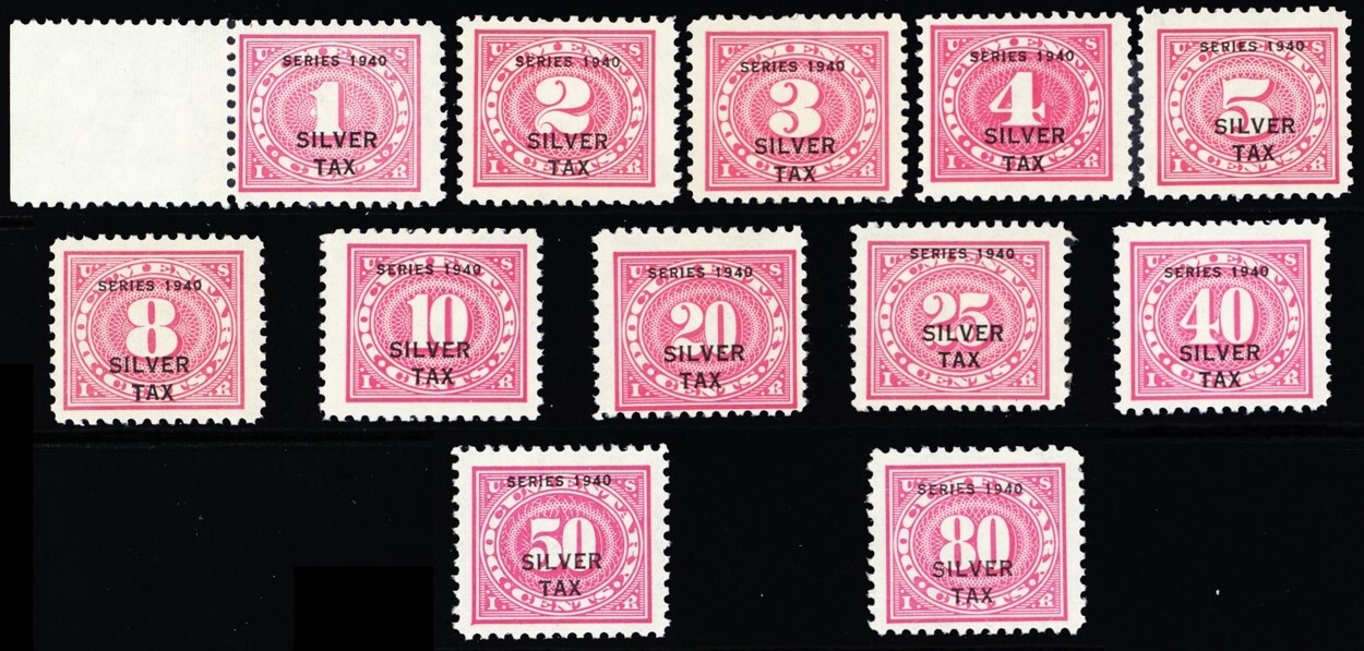 RG37-48, Mint LH (50¢ is NH) Silver Tax Stamps CV $435 * Stuart Katz
