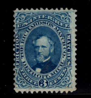 RO159b, 3¢ Blue Richardson Match Co. Private Die Proprietary Stamp, Scott $95