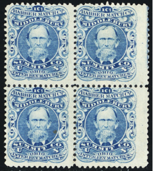 RO17c, Unused 1¢ Barber Match (Watermark) Block * Stuart Katz