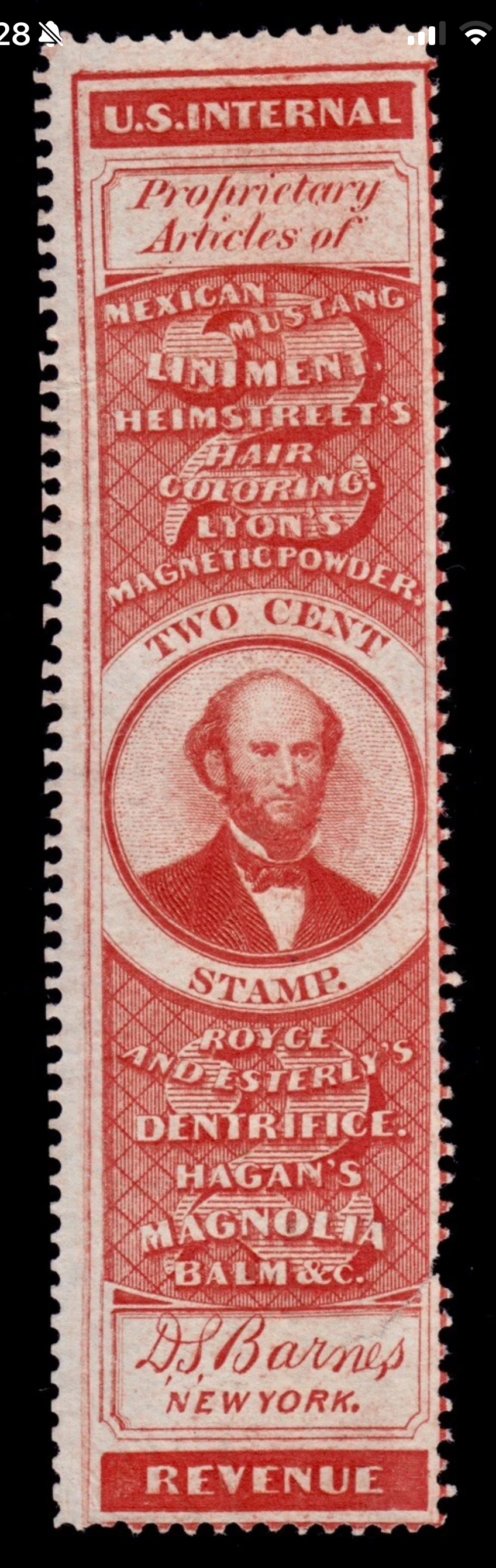 U.S. Private die proprietary revenue medicine stamp from D.S. Barnes, New York, NY.