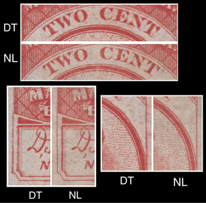 Unique, only recorded all-over, twisted Double Transfer of the ~44 recorded #RS16a 2¢ Vermilion on old paper, rich color and fine impression (see scans for appearance). Unlisted in “Scott Specialized Catalogue.”