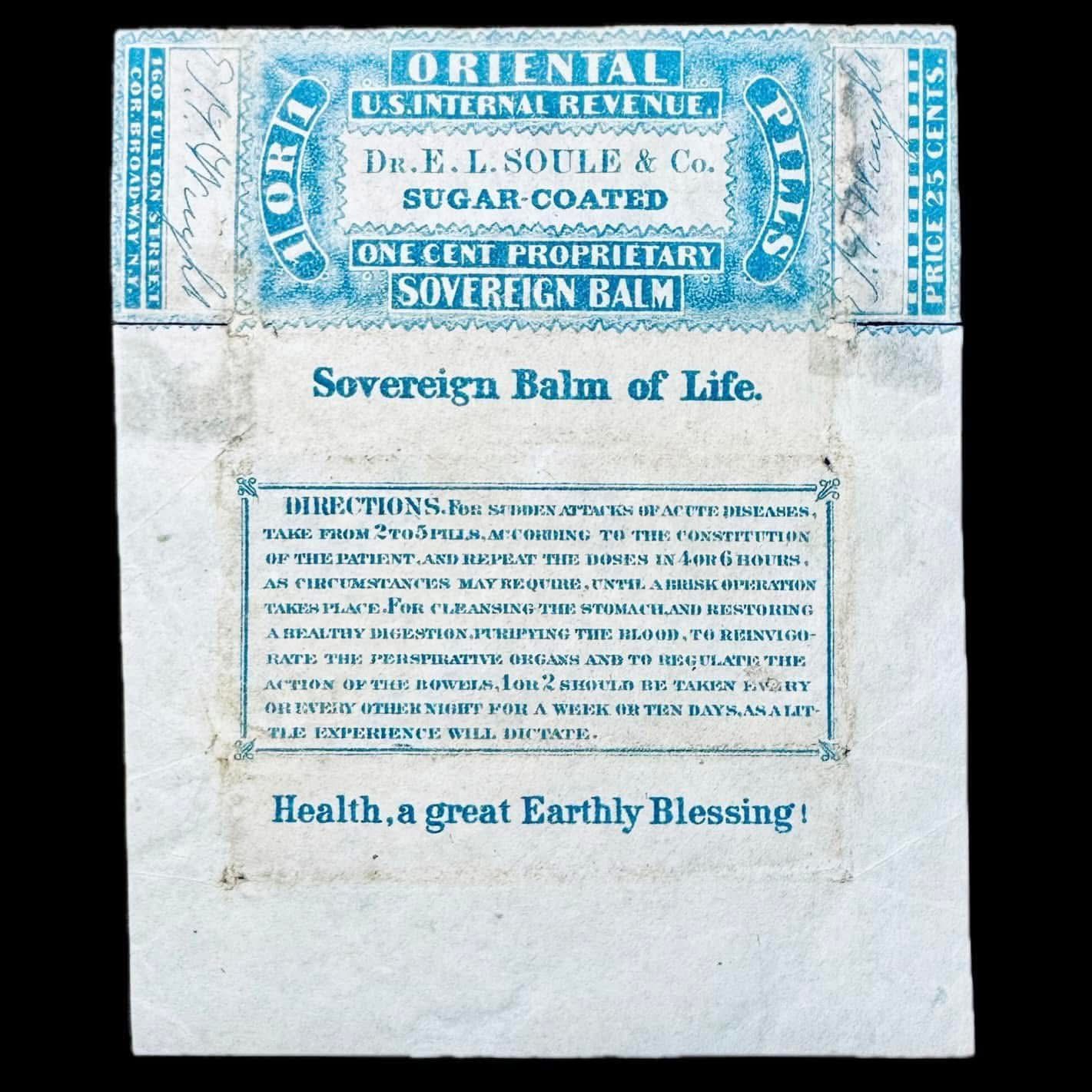 A fantastic U.S. Private die proprietary revenue medicine wrapper rarity.
