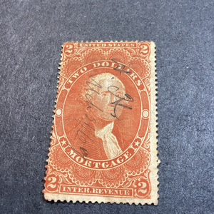 Scott#R82- $2 Washington Revenue Mortgage Pen Cancel -1865-Used-Partial Gum-US. Shipped with USPS Ground Advantage.