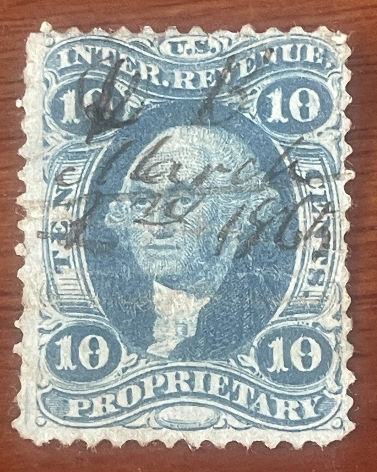 US Stamp R38c, 10 Cent Proprietary. Shipped with USPS Ground Advantage.