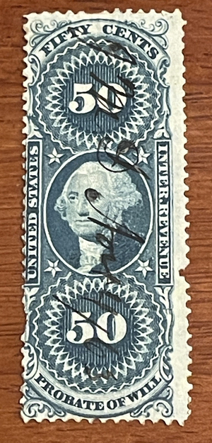 US Stamp Revenue Probate of Will R62c Used George with Black Eye. Shipped with USPS Ground Advantage.