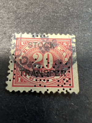 US Stock Transfer Revenue Stamp 20 Cents-Choice Of 1. Shipped with USPS Ground Advantage.