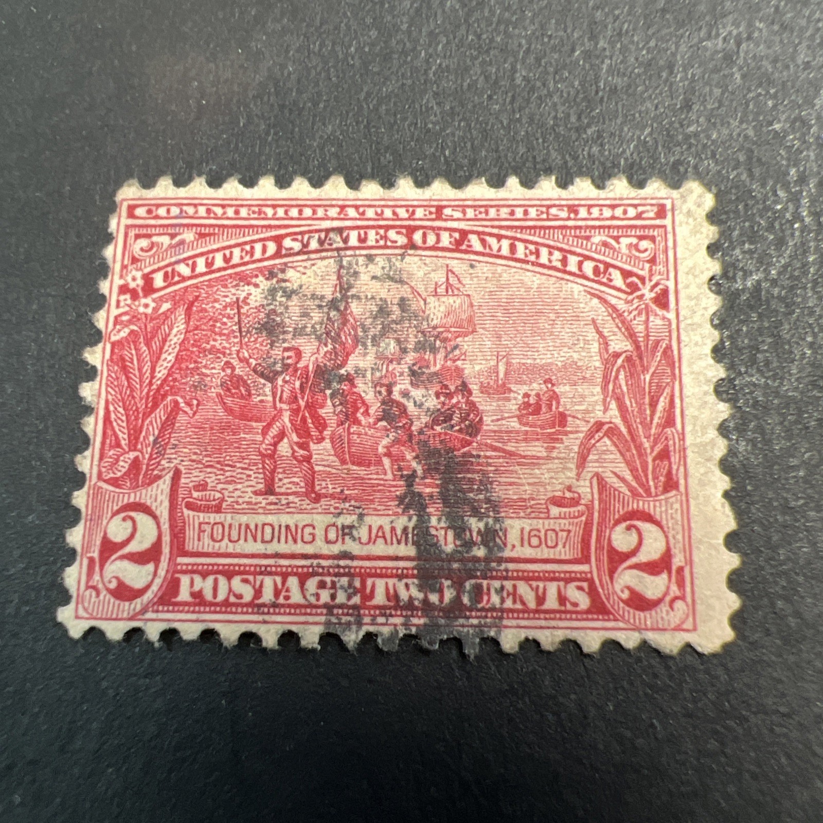 SCOTT# 329 "Founding of Jamestown" 2 CENT 1907 USED - US. Shipped with USPS Ground Advantage.